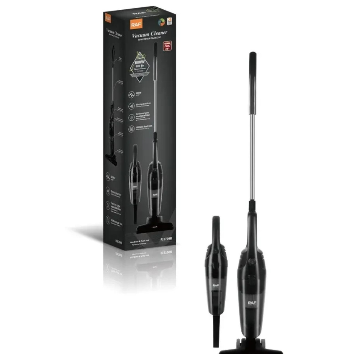 Вертикальний пилосос 2 в 1 з циклонним фільтром RAF R.8709B 600 Вт Чорний+ Вертикальний пилосос RAF R 8709B – це універсальний пристрій 2-в-1, який можна використовувати як класичний підлоговий пилосос або в компактному ручному форматі. Завдяки потужному двигуну 600 Вт і технології циклонної фільтрації він ефективно справляється з прибиранням різних поверхонь, видаляючи навіть дрібні забруднення і пил, що в'ївся.