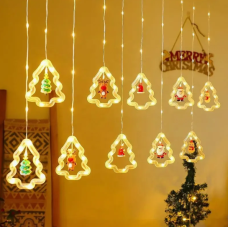Новорічна світлодіодна гірлянда Гірлянда штора "Фігурки в ялинці" 3м (ялинка, сніговик, дід мороз, о..