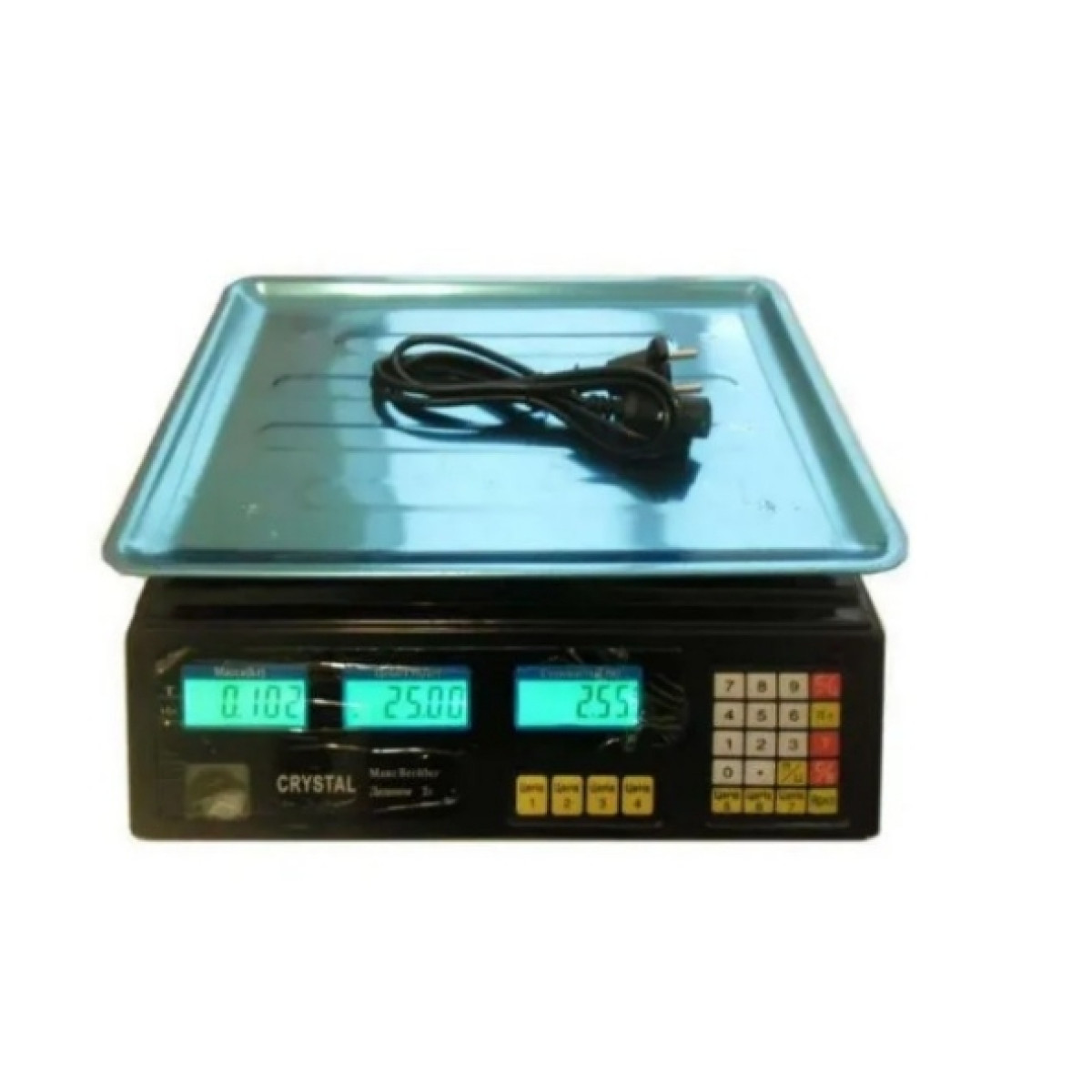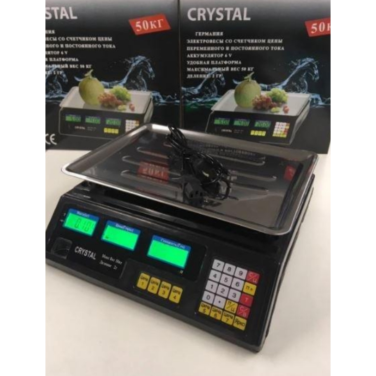 Ваги торгові з лічильником ціни та акумулятором Crystal CT-500 до 50 кг 6V 2g Ваги торгові Crystal до 50 кг з гранично допустимим зважуванням у 50 кг чудово підійдуть як для роздрібної, так і оптової торгівлі на ринку або невеликому магазині. Ці електронні ваги з лічильником ціни можуть працювати як від внутрішнього акумулятора 6 В, так і від звичайної розетки напругою живлення 220 В. Що дуже зручно і практично в процесі роботи. Верхня частина платформи, на яку розміщуються продукти, що зважуються, зроблена з металу для додаткової міцності та надійності. Ваги мають великий дисплей з підсвіткою, рівень освітленості якого можна додатково регулювати. Модель має 7 виділених кнопок для фіксації цін часто придбаних продуктів, а також підтримує функцію тарування. Корпус торгових ваг зроблений з міцного товстого пластику.