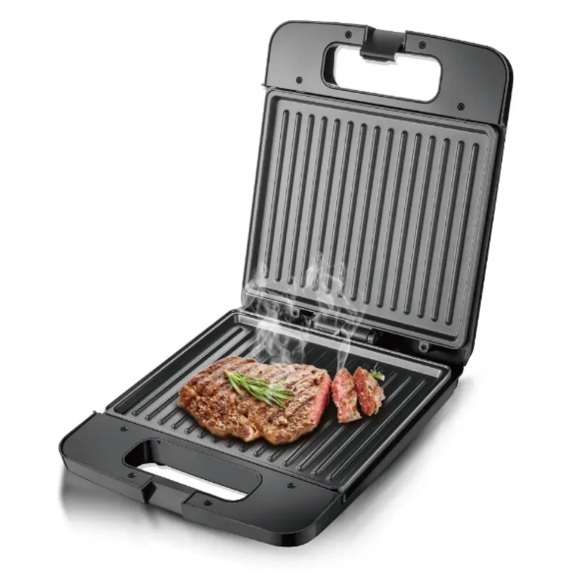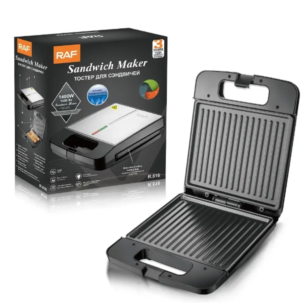 Електрична RAF R.516 сендвічниця чудово підходить для приготування гарячих сендвічів, паніні. Можна готувати або розігрівати стейки, сосиски, овочі та вигадувати свої рецепти. Бутерброди, можливо, є найпростішим рішенням для втамування голоду. І щоб зробити сендвіч смачно і швидко, знадобиться RAF R.516. Рельєфні пластини покриті антипригарним матеріалом, що робить їжу більш здоровою і легкою. Спокійно можна готувати без масла і жиру! Сендвічниця оснащена лампами, які дають зрозуміти, що прилад «готовий до використання» і щоб попередити, коли пластини гарячі. Не хвилюйтеся, все зручно закривається і безпечно у використанні.