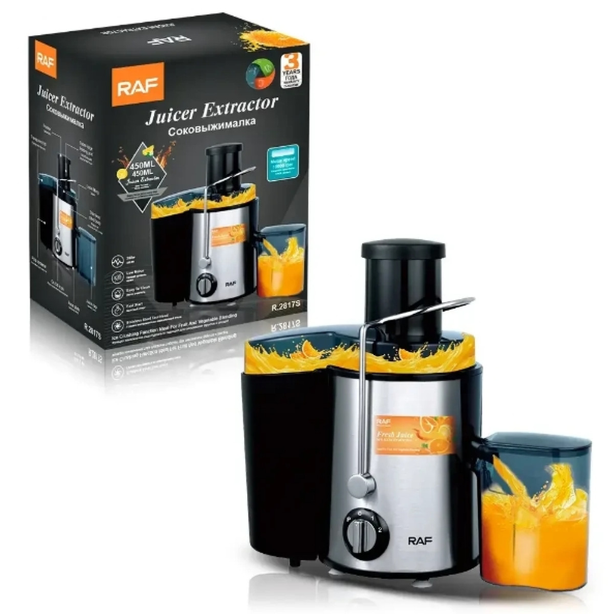 Соковижималка RAF R.2817S — це сучасний і потужний побутовий прилад шнекового типу, розроблений для ефективного вилучення соку з овочів і фруктів. Вона оснащена мотором потужністю 1000 Вт і дозволяє вибирати між трьома швидкісними режимами, щоб досягти бажаної консистенції напою. Пристрій виготовлений з пластику та нержавіючої сталі, що забезпечує міцність і легкість у догляді. Компактні розміри та стильний дизайн роблять цю соковижималку зручним і естетичним доповненням до вашої кухні.