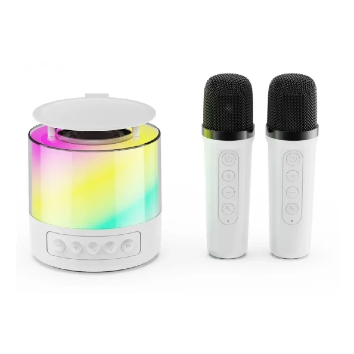 Насолоджуйтесь улюбленими мелодіями в будь-який час із цією компактною караоке-колонкою Bluetooth. Вбудований мікрофон і потужність 5 Вт перетворять будь-який простір на сцену - ідеально для домашніх вечірок, пікніків або поїздок в автомобілі.