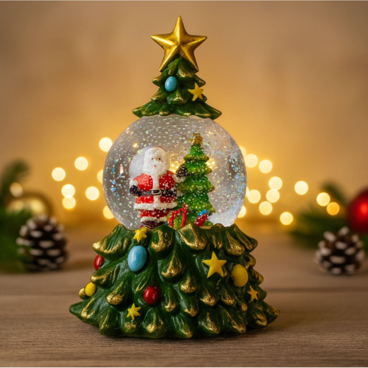 • Яскрава LED-Підсвітка: Вбудовані LED-лампи підсвічують композицію, перетворюючи декор на затишний нічник та головний акцент вашого новорічного інтер'єру.