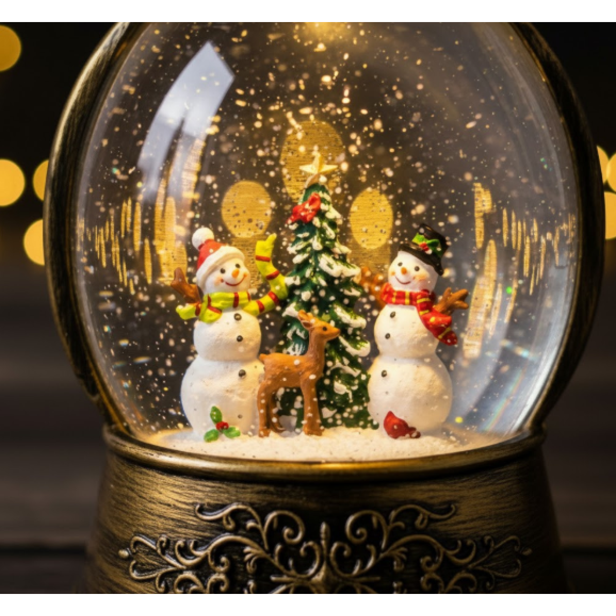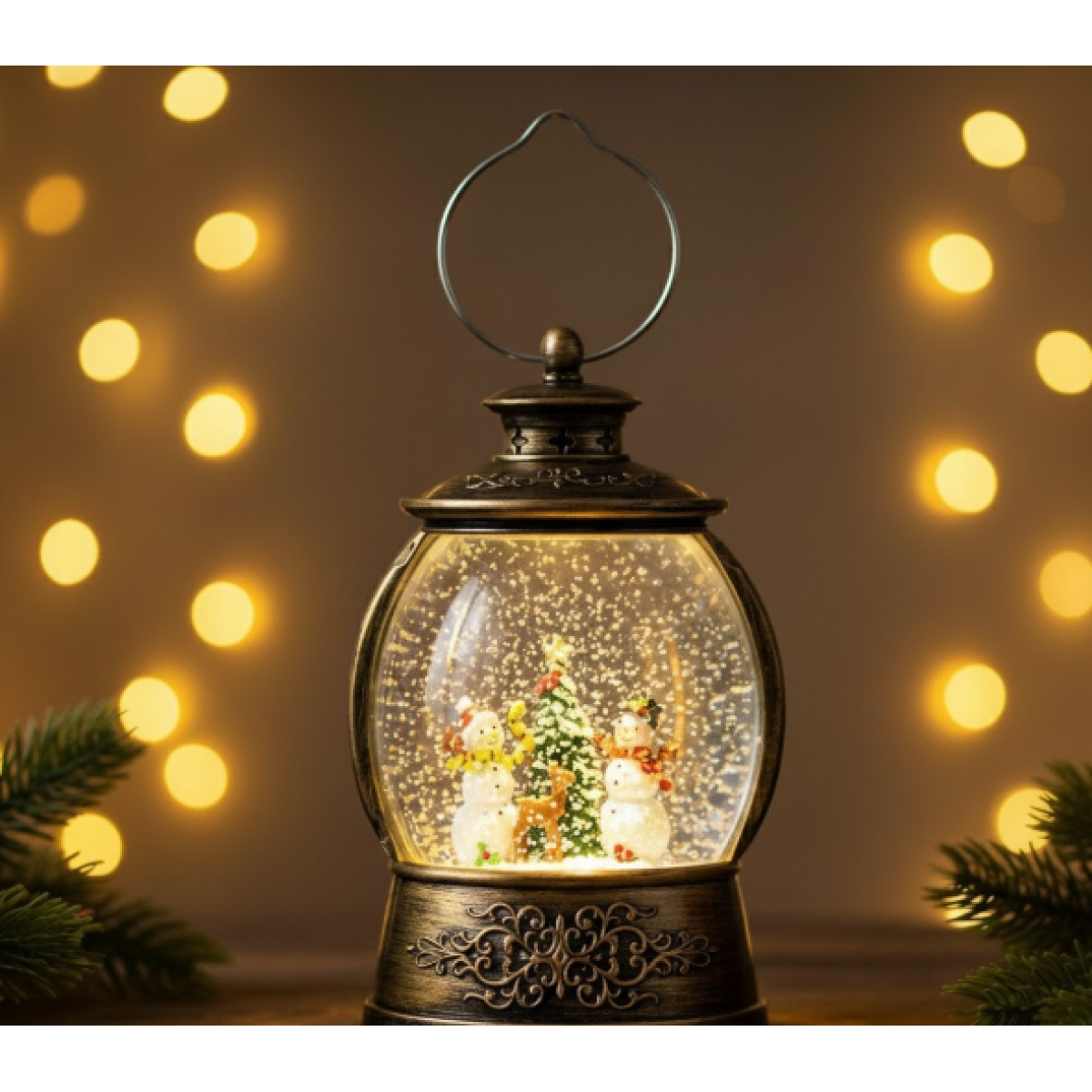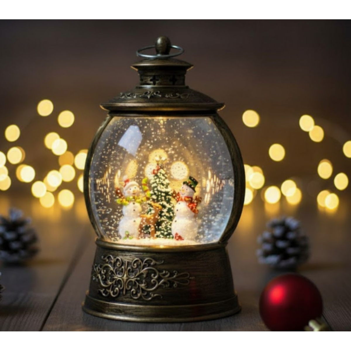 - Яскрава LED-Підсвітка: Вбудовані LED-лампи підсвічують композицію, перетворюючи ліхтар на затишний нічник і головний акцент вашого новорічного інтер'єру.